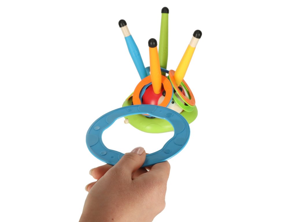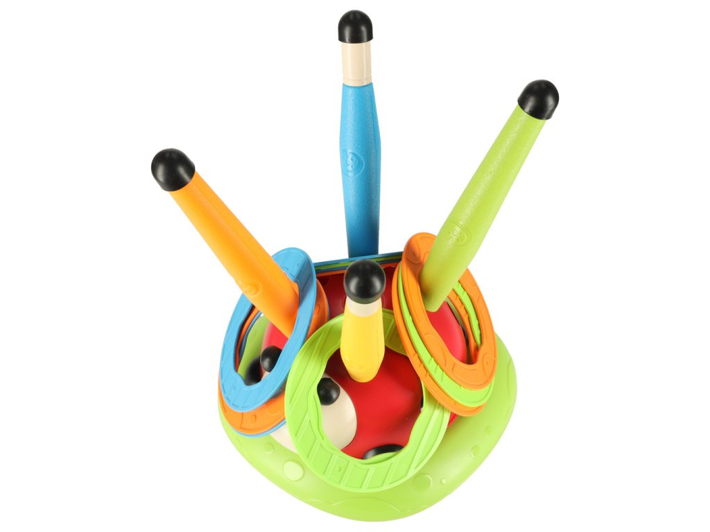 Dítě může házet kolečky a snaží se je přehodit přes vyčnívající tyče - procvičuje přesnost, zručnost a koordinaci oko-ruka.