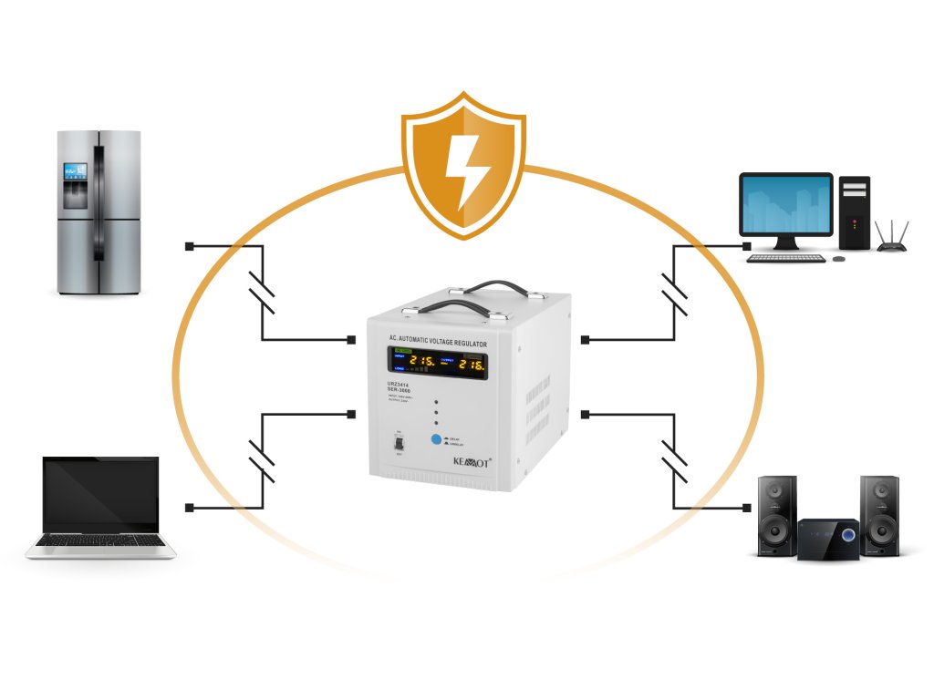Bez ohledu na zatížení sítě a kolísání výstupního napětí stabilizátor KEMOT SER-2000 udržuje napětí na úrovni 230 V ±3%, což umožňuje efektivní práci všech zařízení, včetně těch citlivých na kvalitu síťového napětí. Regulace probíhá automaticky, což zaručuje vysokou přesnost výstupního napětí. KEMOT SER-2000 najde uplatnění jak v domácnostech, tak v kancelářích, ideálně se hodí pro televize a spotřebiče RTV, stejně jako pro reproduktory, mini věže a další audio/video zařízení či počítače.
