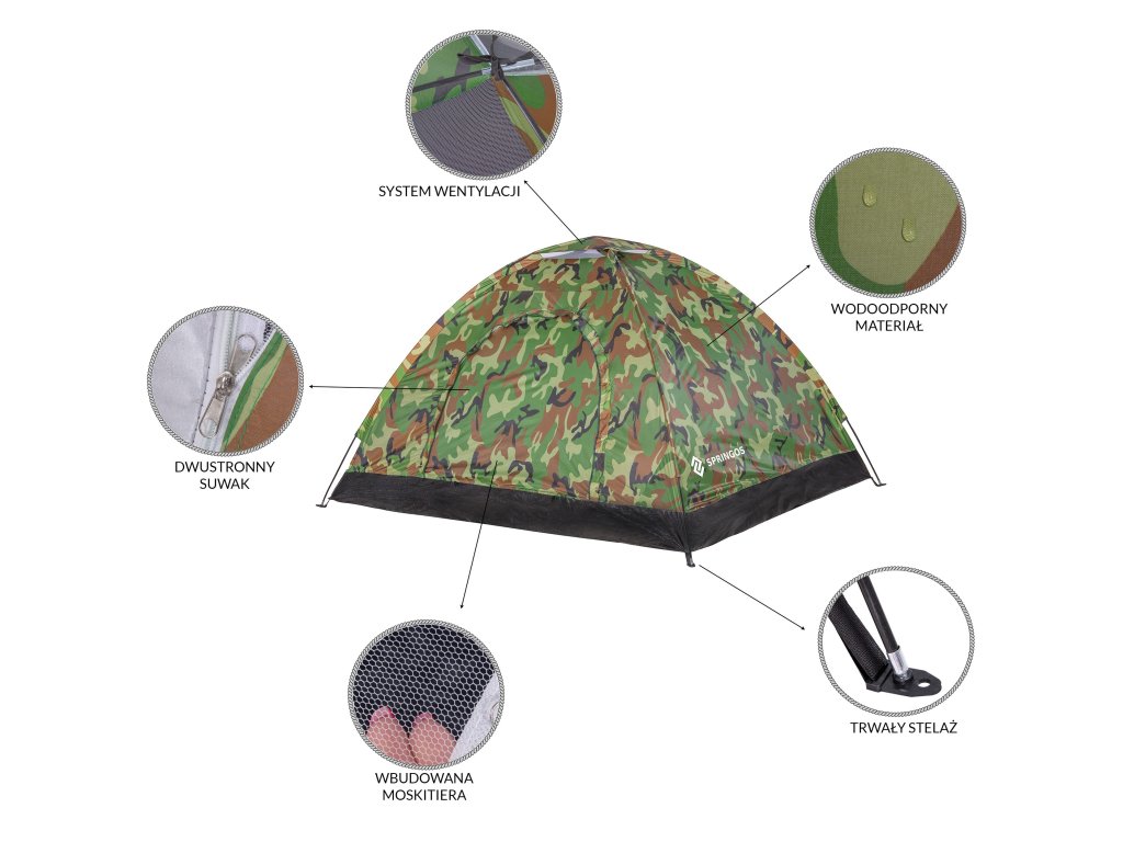 - Materiál: 170T Polyester, voděodolný, potažený UV filtrem