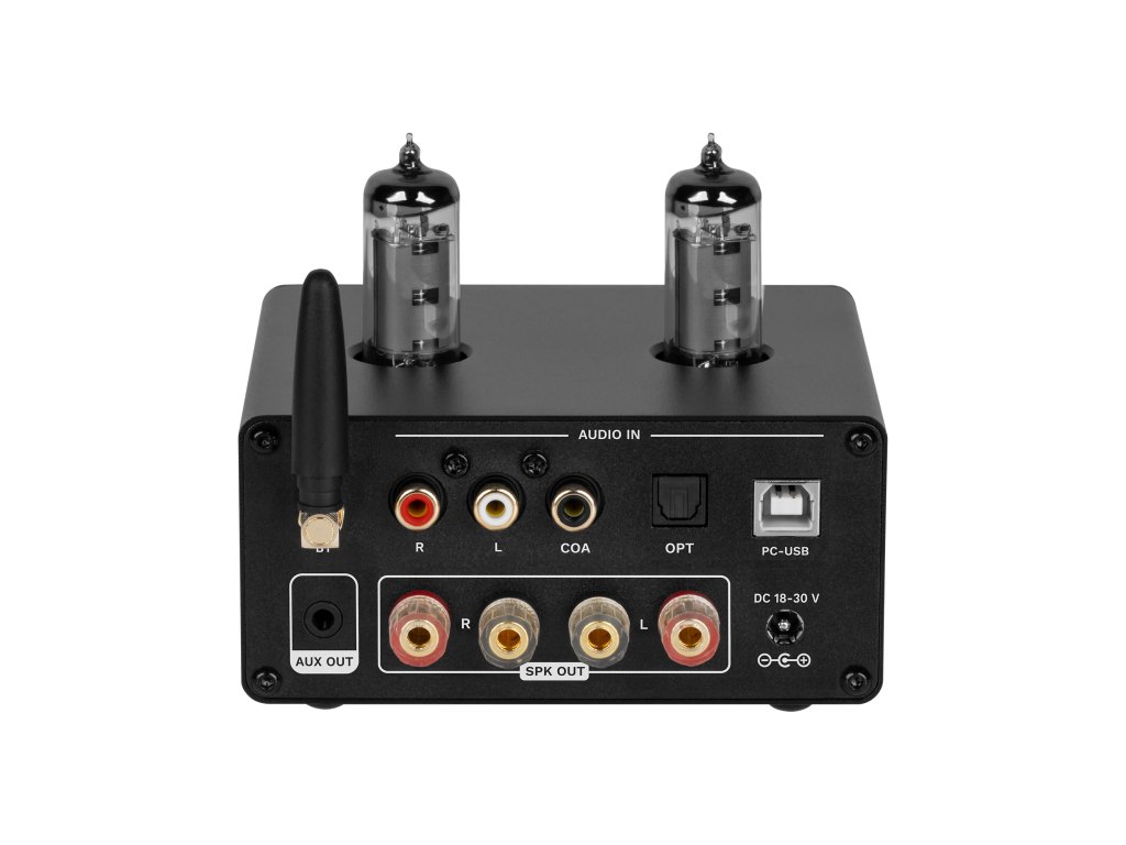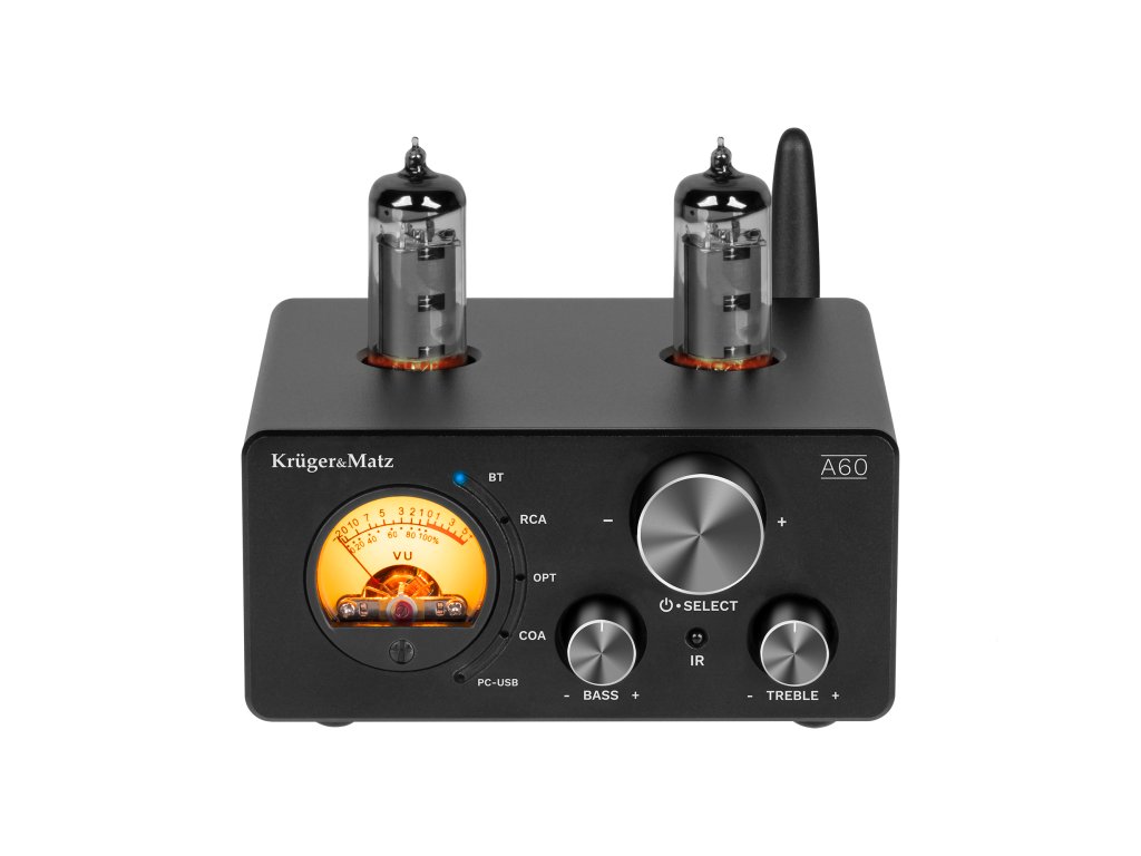 Kruger&Matz A60 nabízí širokou škálu možností. Zařízení je vybaveno vstupem RCA, koaxiálním a optickým vstupem a také portem USB-B. Mnoho portů, které najdete na zadním panelu, vám pomůže vytvořit váš vlastní pokročilý audio systém.