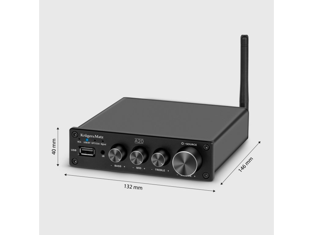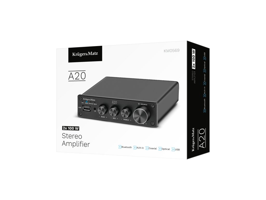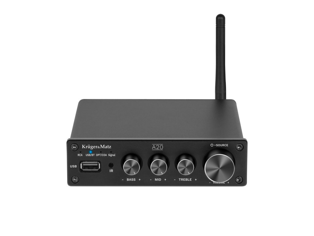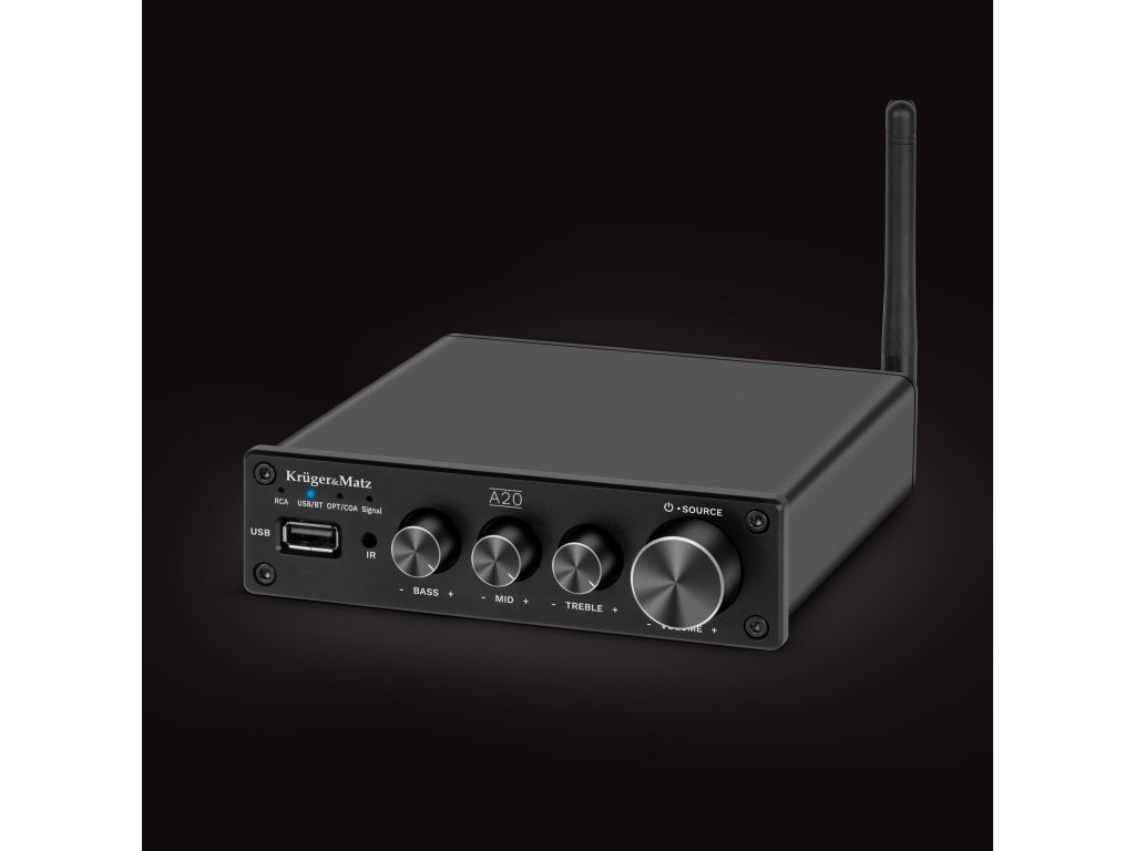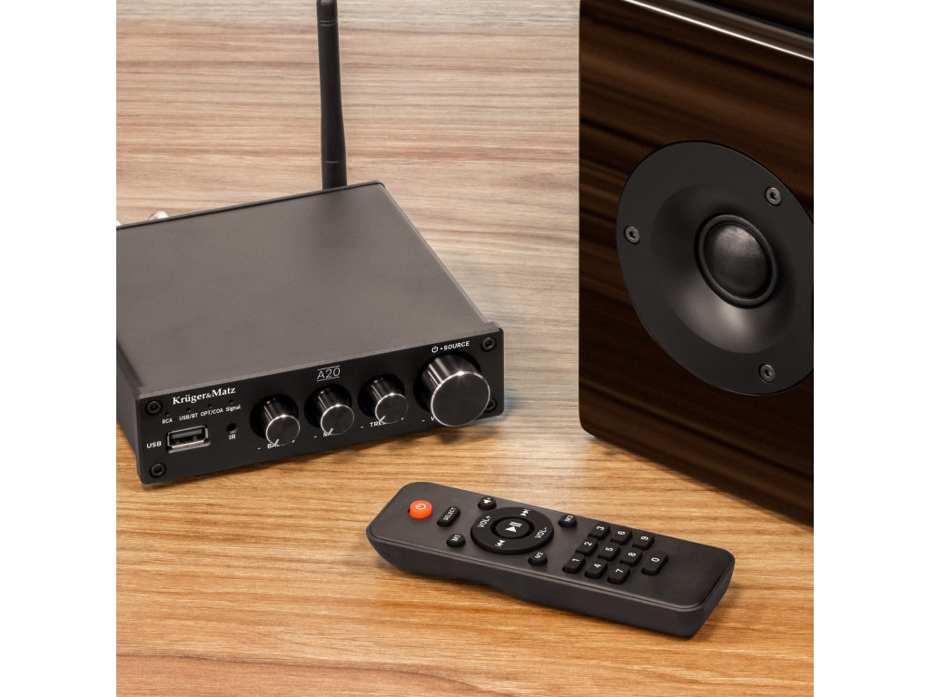 Kruger&Matz A20 vám nabízí širokou škálu možností. Zařízení je vybaveno vstupy RCA, koaxiálním a optickým. Početné sloty, které najdete na zadním panelu, vám pomohou vytvořit si vlastní pokročilý audio systém.