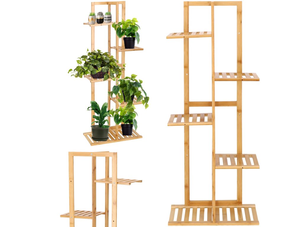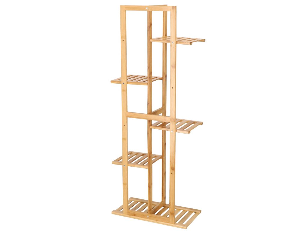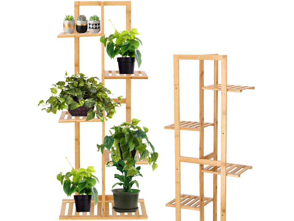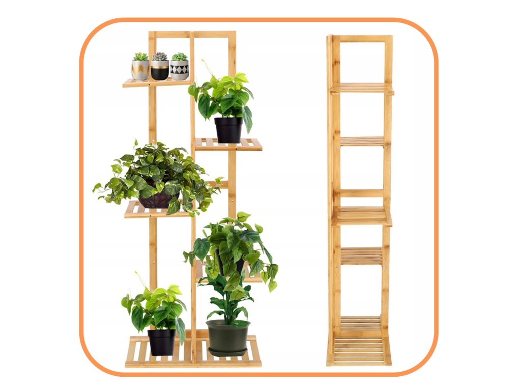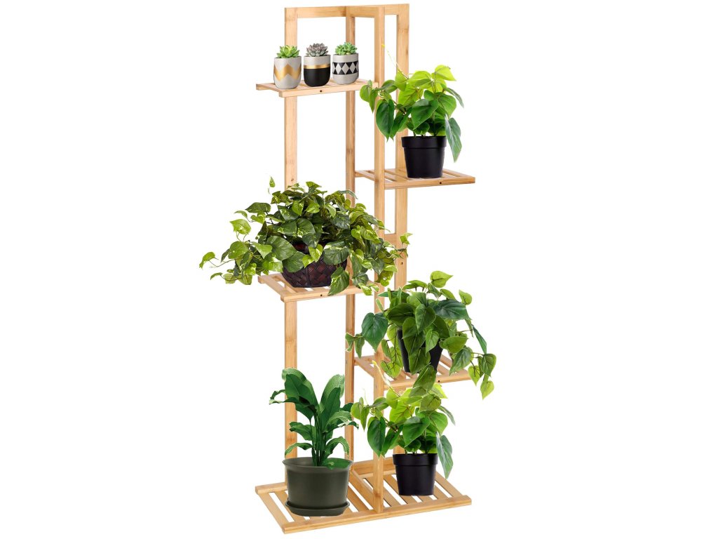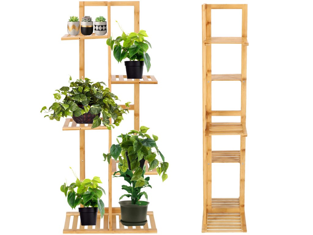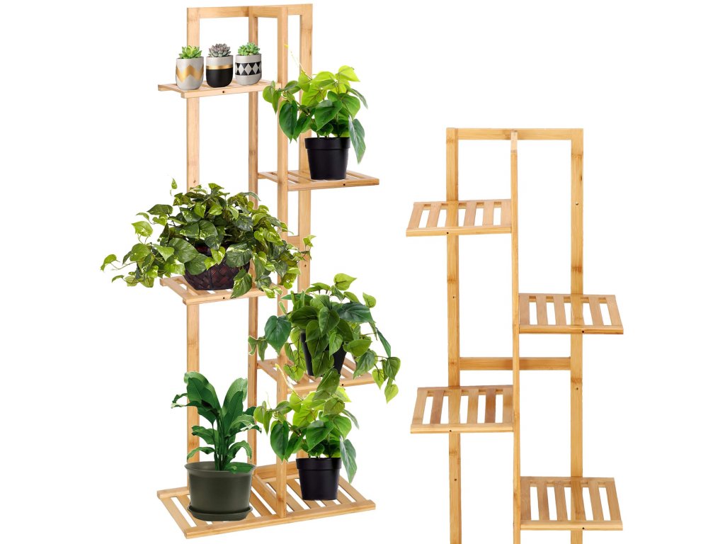 Drevený stojan na kvety na 6 črepníkov.