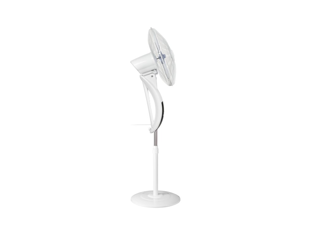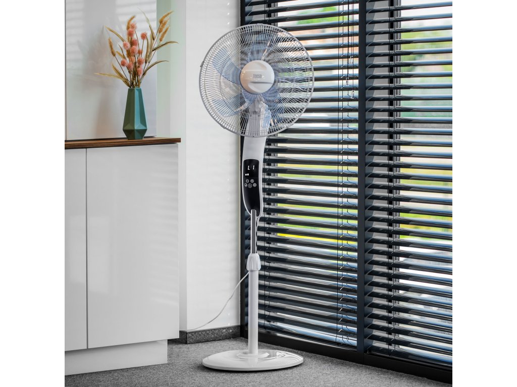 Zařízení má tři režimy rychlosti, díky kterým přizpůsobíte teplotu svým potřebám. Velký průměr lopatek, poháněných motorem o výkonu 50 W, v kombinaci s automatickou oscilací 90° zajišťuje, že ventilátor snadno ochladí větší místnost. Důležité je, že kovová ochrana kolem lopatek zajišťuje, že je zařízení bezpečné pro obyvatele domu.