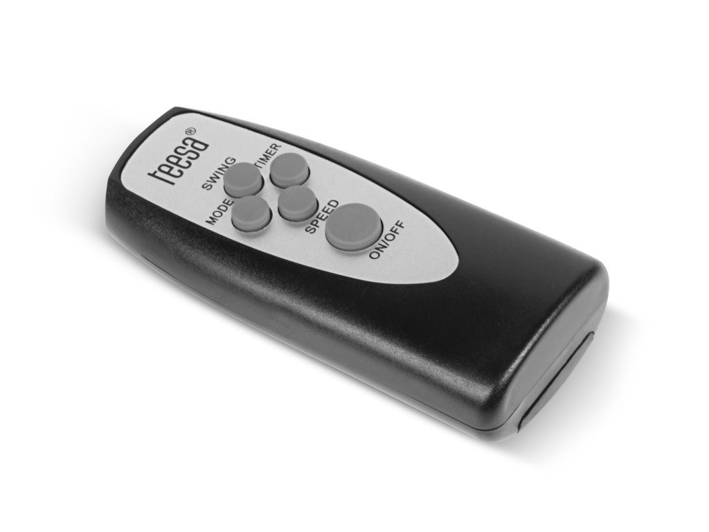 Aby byla zajištěna pohodlná obsluha, je ventilátor Teesa vybaven dálkovým ovladačem. Díky němu můžete pohodlně bez nutnosti vstávání z pohovky zapínat a vypínat ventilátor, měnit provozní režimy, regulovat rychlost a oscilaci a nastavit čas, po kterém se zařízení automaticky vypne.