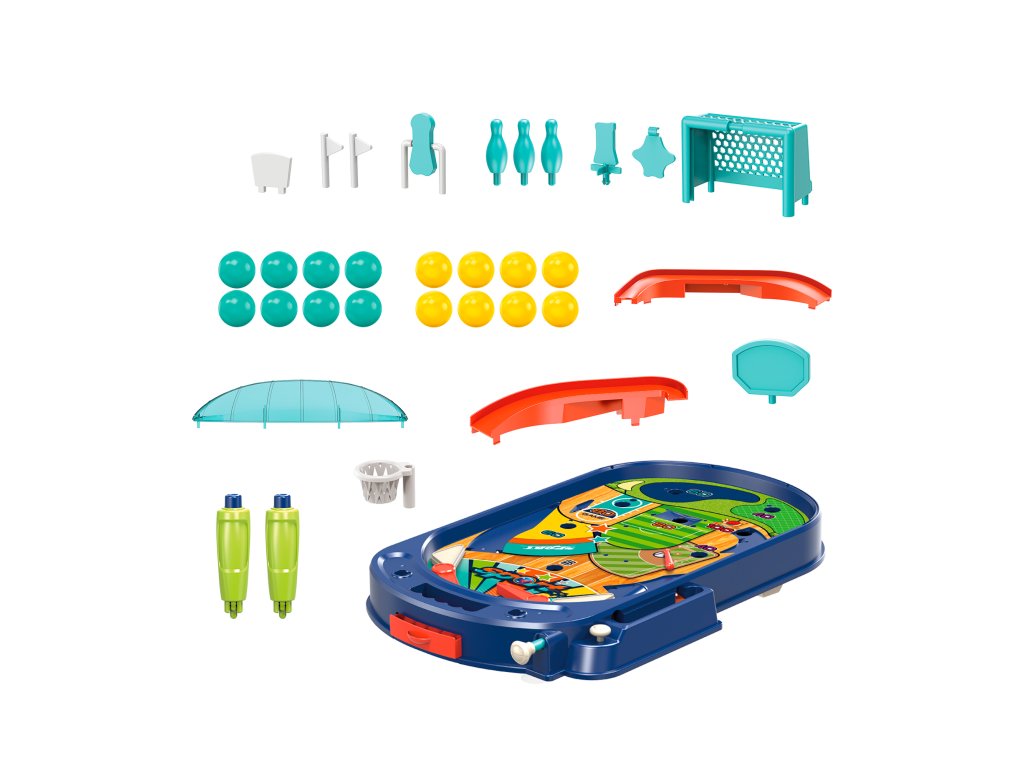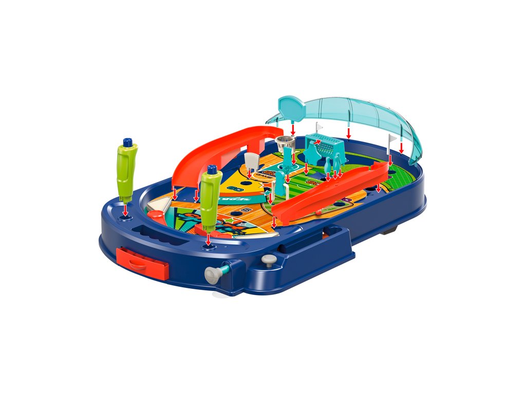 Připravte se ke hře umístěním kuliček do speciálního žlábku. To je první krok k zahájení zábavy! Poté nabijte kuličku do vystřelovače jedním jednoduchým stisknutím tlačítka. Jste už o krok blíže k akci! Abyste vystřelili kuličku, přitáhněte k sobě páku a pusťte ji. Sledujte, jak kulička míří ke gólu! Použijte tlačítka na držadlech pro pohyb páčkami. Vaším cílem je vstřelit kuličku do branky – preciznost a reflexy jsou klíčové!