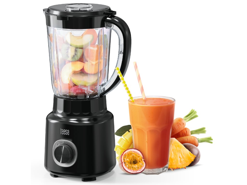 Rádi si v klidu své kuchyně připravujete čerstvé ovocné koktejly nebo krémové polévky ze zeleniny? V takovém případě je dobrý mixér vaším absolutně nezbytným pomocníkem. Stolní mixér TSA3542 s prostornou nádobou o objemu 1,5 litru pojme opravdu velkou dávku vitamínů ze zeleniny a ovoce.