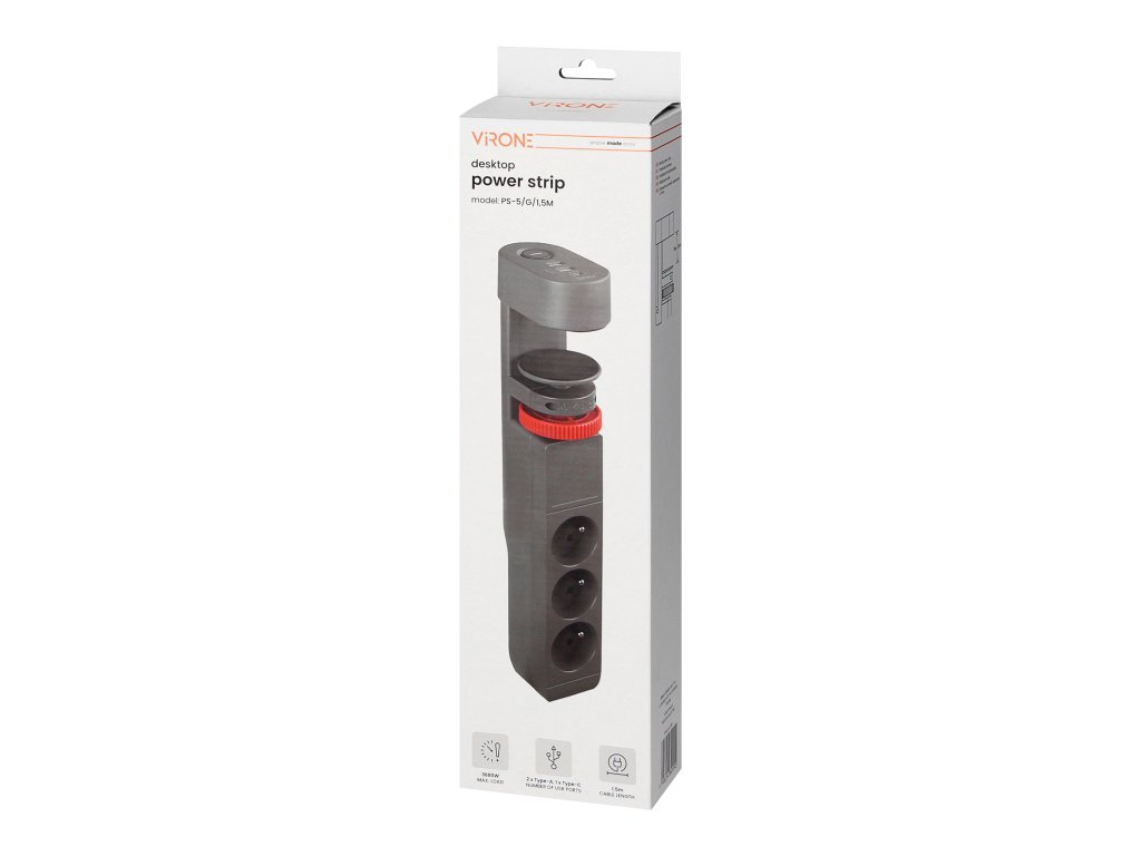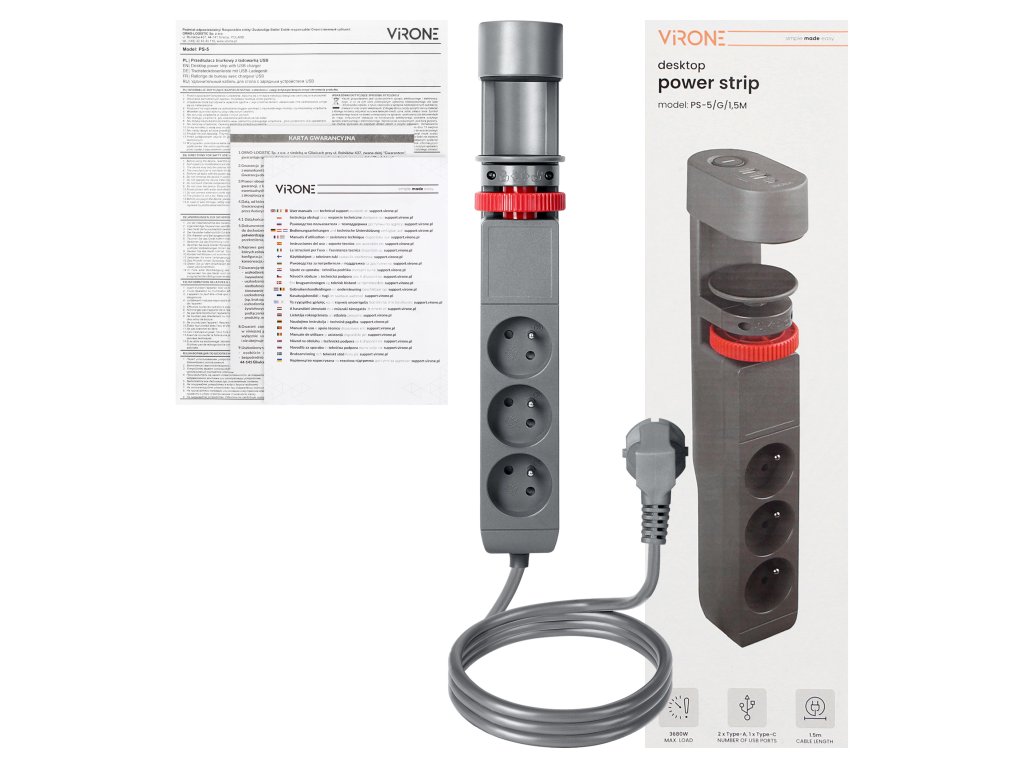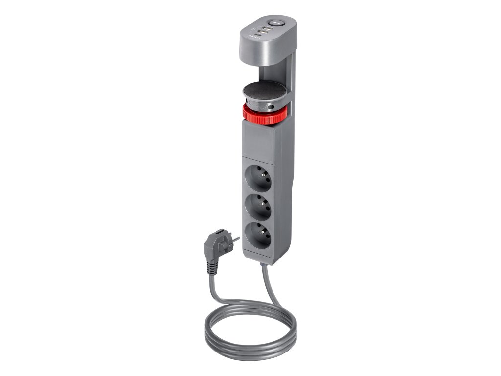 3-násobná stolní prodlužovací lišta je funkční elektrické zařízení vynikající v oblastech, kde je omezený přístup k elektrické zásuvce. Dobře funguje na stolech, pracovních deskách nebo v oblastech, kde je potřeba připojit několik zařízení současně.Jmenovitý proud 16 A umožňuje napájet zařízení s vysokou spotřebou energie s maximálním zatížením 3680 W. 3 francouzské zásuvky 2P+E usnadňují připojení standardních zařízení, jako je počítač nebo domácí spotřebiče, zatímco vestavěná USB nabíječka (2xUSB-A a 1xUSB-C) umožňuje nabíjet až 3 mobilní zařízení, jako je smartphone, tablet nebo power banka, současně. Jmenovitý proud USB nabíječky 3,4 A usnadňuje rychlé nabíjení mobilních zařízení.
