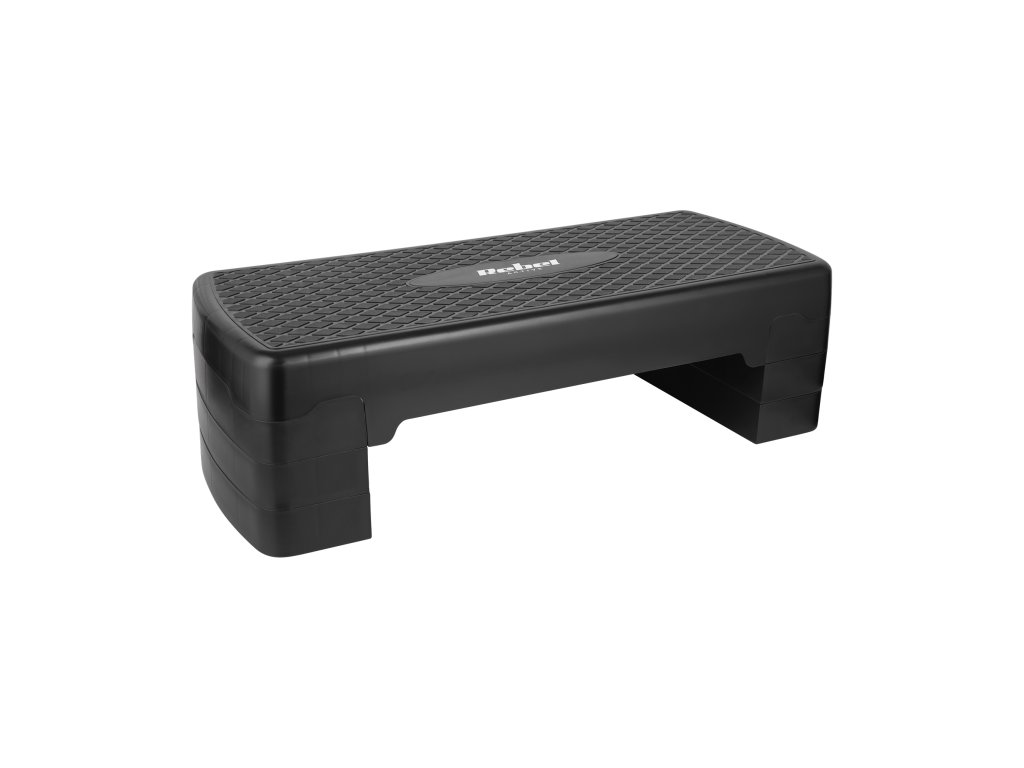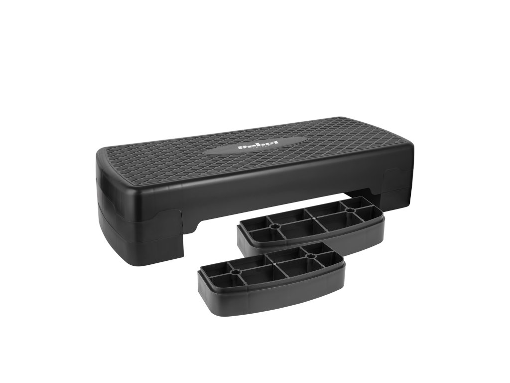 Stupínek na aerobik a fitness cvičení, 3 úrovně, 68cm, černý, REBEL ACTIVE