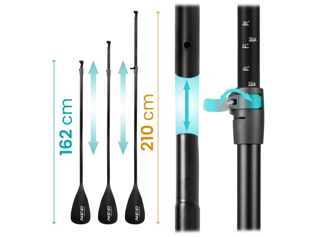 Systém upínání s pákou umožňuje rychlé nastavení požadované délky a zajišťuje stabilitu při plavbě.