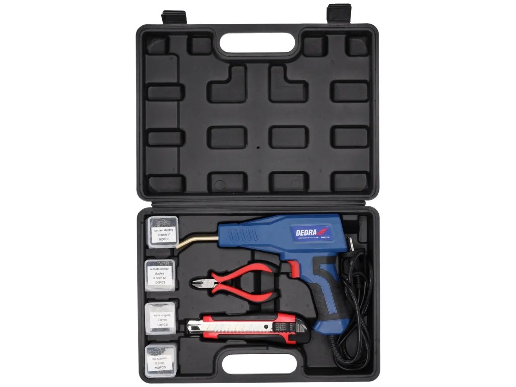 Svářečka na plast DED7528 je nezbytné zařízení v každé dílně, určené k opravě a zpevnění různých druhů plastových materiálů, jako je PE, PP, PA, PB a PVC.