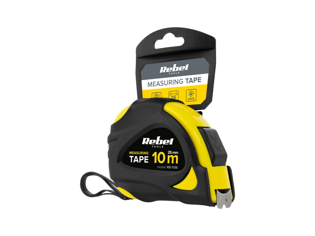Měřicí páska Rebel s dosahem 10 m byla vyrobena z oceli, což v kombinaci s robustním plastovým pouzdrem zajišťuje dlouhou životnost a odolnost vůči nárazům a jiným poškozením. Měřicí háček a zámek ve spojení s velkou šířkou nástroje (25 mm) usnadňují přesné měření velkých vzdáleností bez opory, díky čemuž si sami poradíte s měřením téměř v každé situaci.