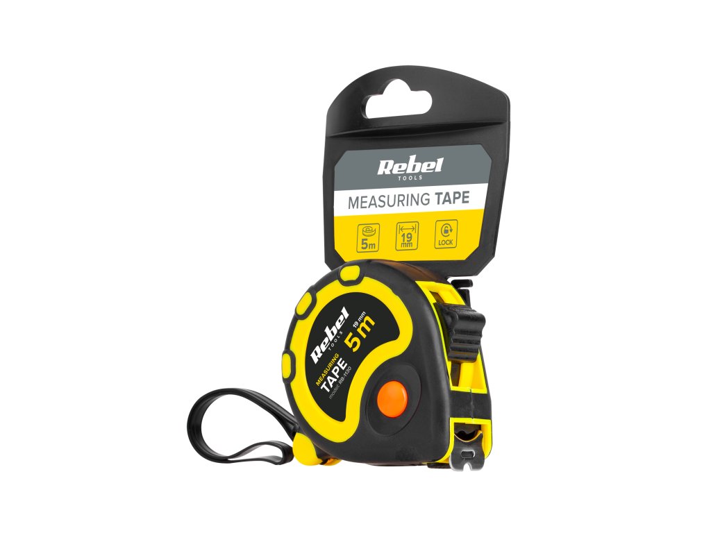 Páska metru Rebel o dosahu až 5 m je vyrobena z oceli, což v kombinaci s pevnou plastovou schránkou zaručuje dlouhou životnost nástroje a odolnost proti nárazům a dalším poškozením. Pohodlí při používání svinovacího metru Rebel zajišťuje měřicí háček a blokovací tlačítko, které usnadňují přesné měření na velké vzdálenosti.