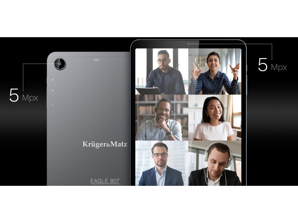 Potřebujete tablet pro distanční výuku dítěte? Nebo vás čeká videokonference s kolegy? Díky přední kameře 5 Mpix se EAGLE 807 dokonale hodí pro online komunikaci.