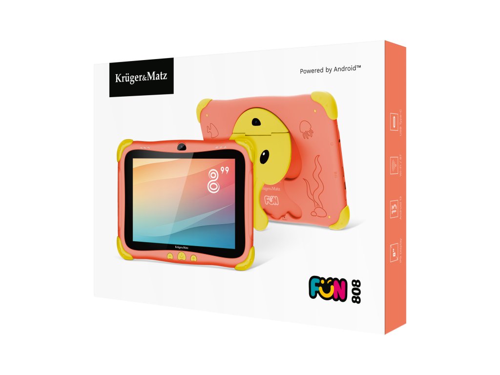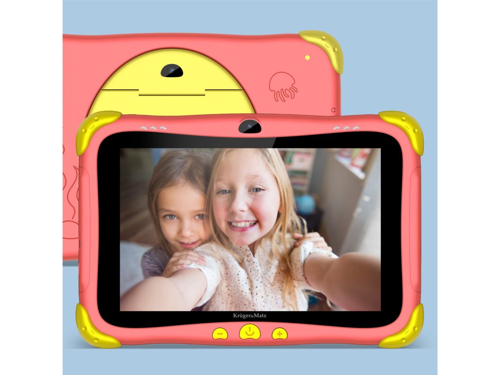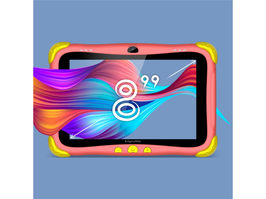 Tablety pre deti by mali mať nielen pevnú konštrukciu, ale aj zaujímavý dizajn, ktorý zaujme už z diaľky. S ohľadom na to je farebný obal tabletu Kruger&Matz FUN 808 vybavený gumenými rohmi, ktoré poskytujú ochranu pred náhodnými pádmi a otrasmi.