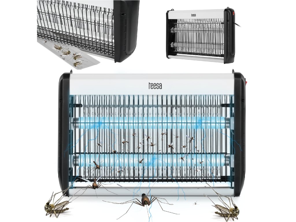 Máte dost mušek, komárů a dalšího otravného hmyzu Zkuste UV lampu na hmyz Teesa. Tento model byl navržen pro maximální efektivitu a je určen pro prostory s velkou plochou – až do 80 m , proto je ideální pro sklady, obchody či dílny.Efektivita na úrovni Dvě fluorescenční zářivky FSL T8 použité v lampě Teesa s výkonem 10 W každá se vyznačují životností až do 6000 hodin. Díky tomu se nemusíte obávat časté výměny a lampa vás bude dlouhodobě účinně chránit před hmyzem.