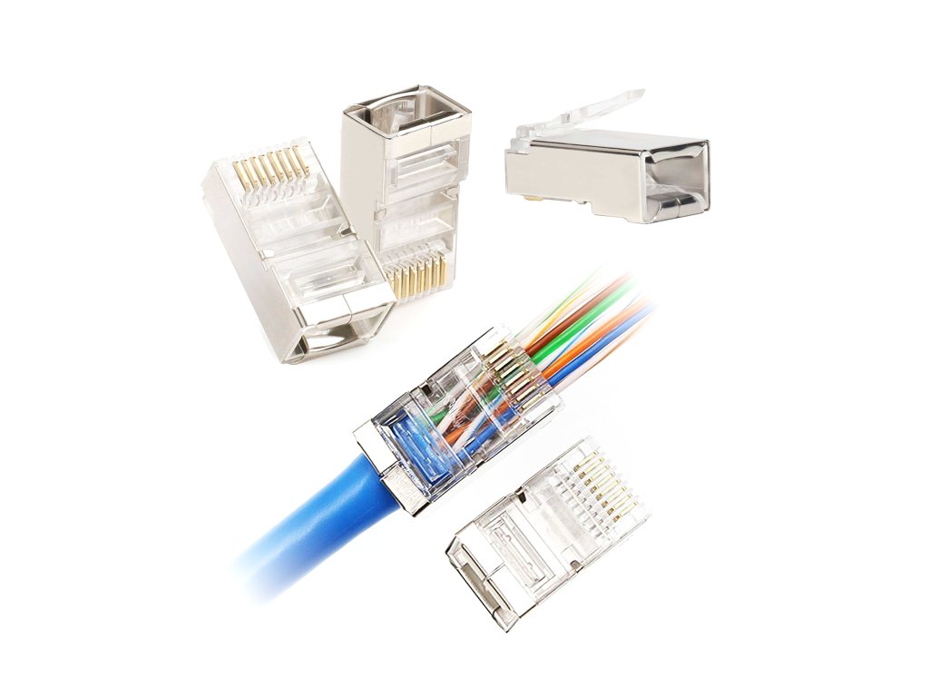 System Pass Through umožňuje protažení celého vodiče konektorem (konektor musí být také Pass Through). Výhoda oproti tradičnímu krimpování konektorů spočívá v tom, že tento systém umožňuje protažení vodičů konektorem a jejich rovnoměrné uspořádání. Po úplném zalisování krimpovací kleště odstřihnou přebytečné vodiče konektoru. To zaručuje mnohem lepší a preciznější zalisování konektoru. Nejlepších výsledků se dosahuje při použití krimpovacích kleští Pass Through - Konektory jsou nejvyšší kvality, každý pin je pokryt 3mikronovou vrstvou zlata, která zabraňuje oxidaci kontaktu - Konektory jsou baleny do uzavíratelných sáčků. - Konektory jsou určeny na kabel typu drát.System Pass Through umožňuje protažení celého vodiče konektorem (konektor musí být také Pass Through).