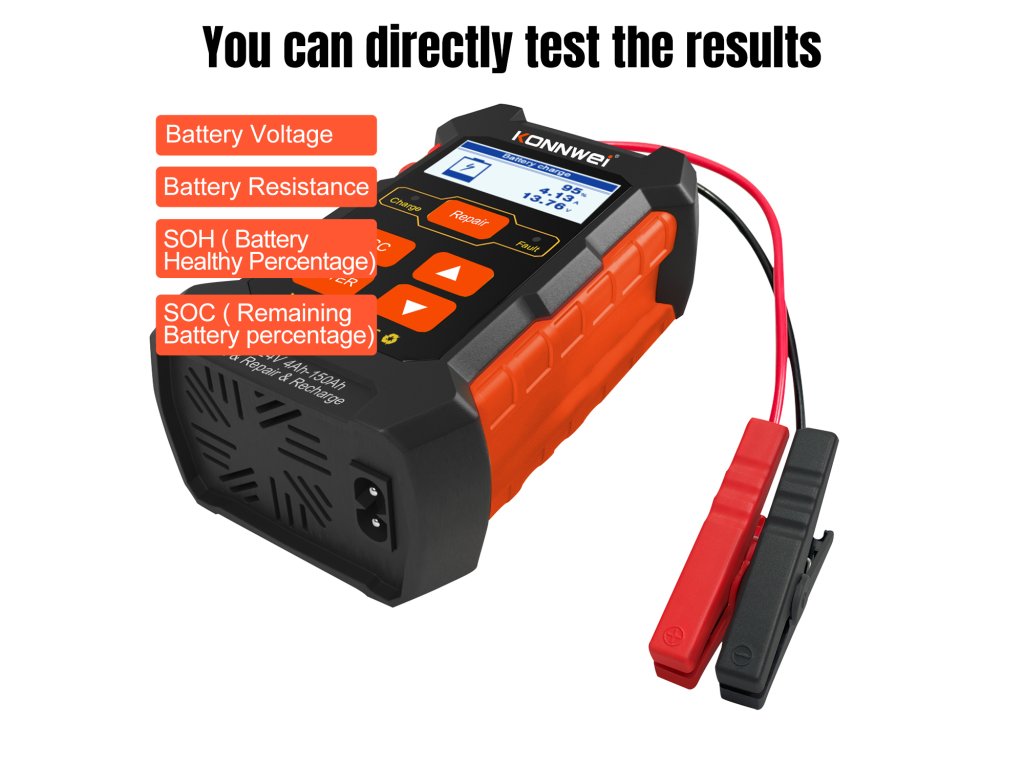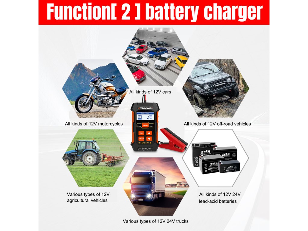 Díky funkci nabíječky může KW520 nabíjet startovací olověné akumulátory automobilů o napětí 12 V s kapacitou od 4 AH do 150 AH, včetně běžných olověných akumulátorů, plochých AGM baterií, spirálních AGM baterií, gelových baterií, lithium-železo-fosfátových baterií (LiFeP04) atd.