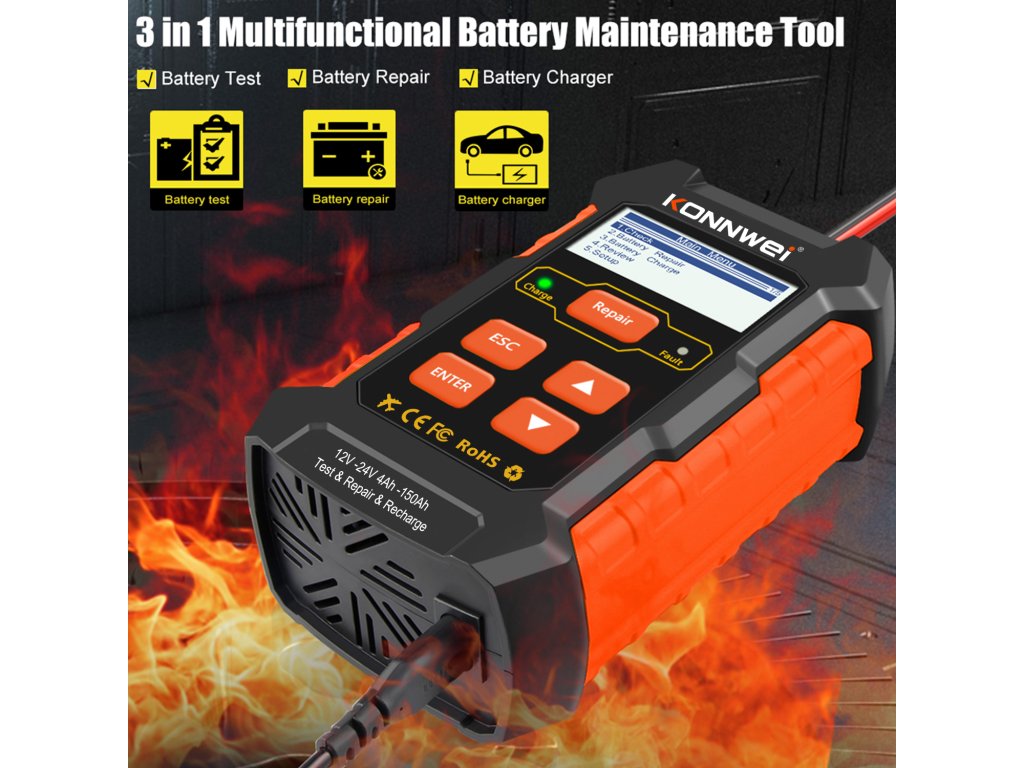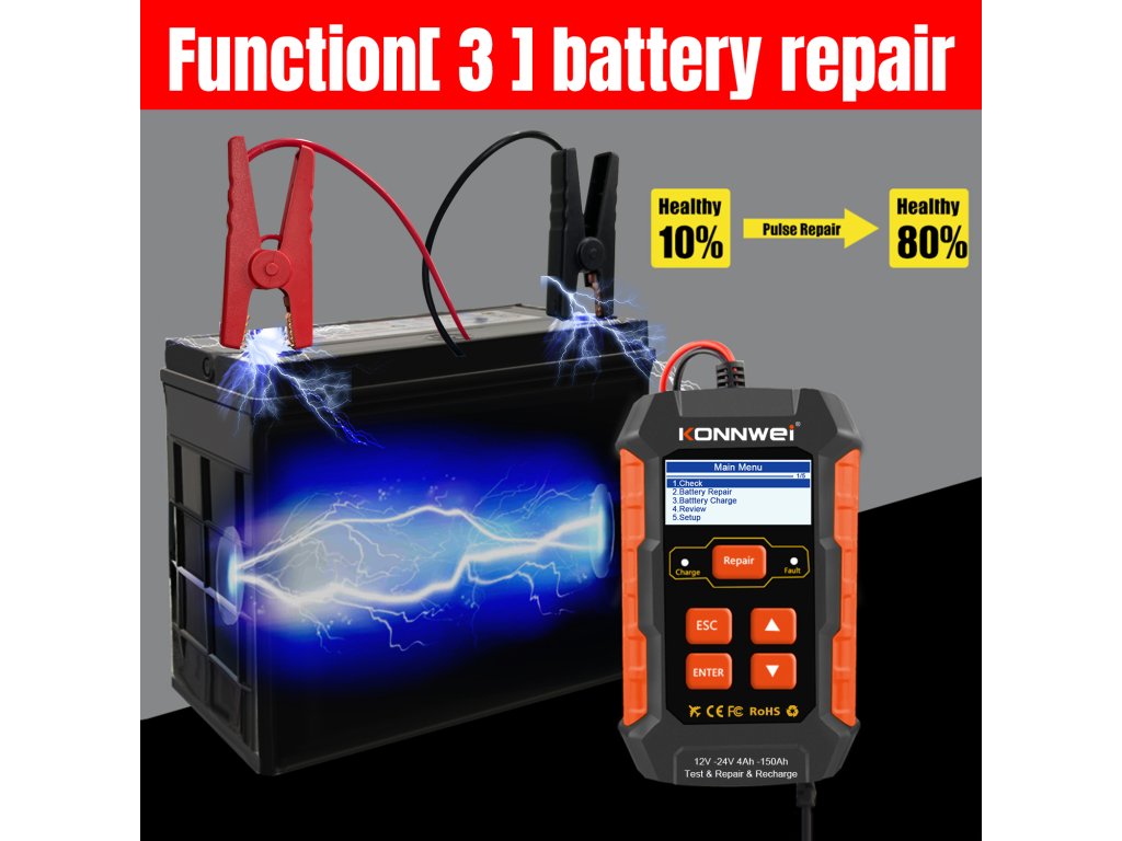 KW520 má také funkci opravy baterie pro obnovení ztracené účinnosti pomocí pulzního napětí a proudu o určité frekvenci.