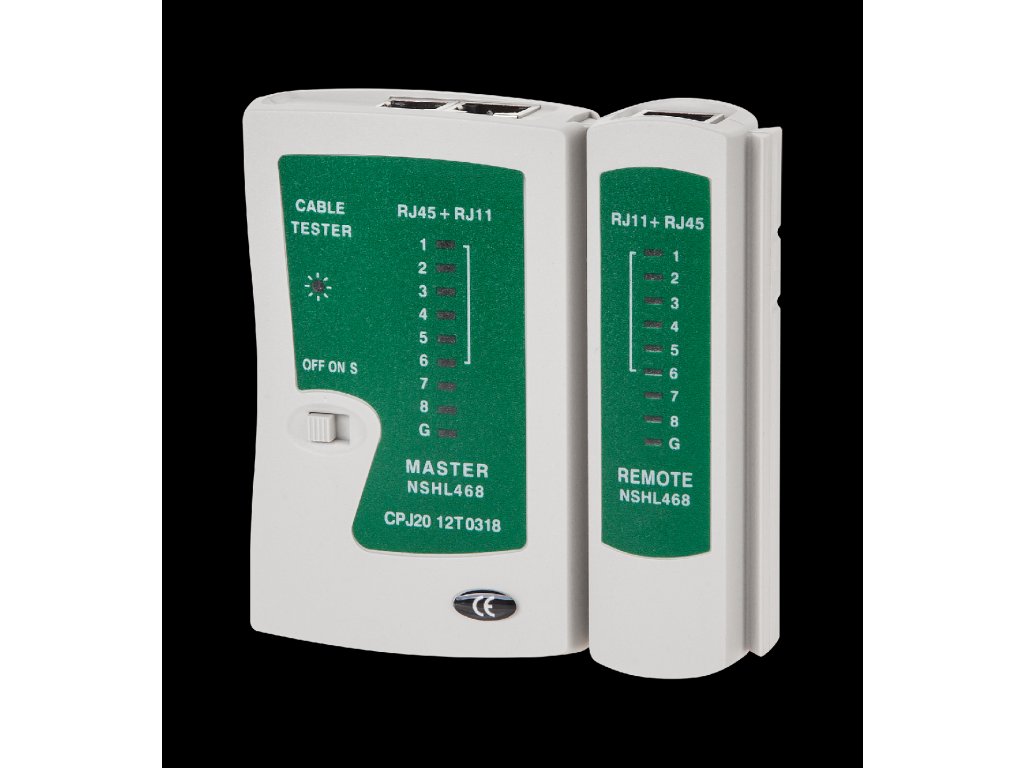 Tester určený pro testování síťové kabeláže RJ45 typu: UTP, FTP, STP a telefonních kabelů typu: RJ11 a RJ12. Technické údaje: 8 LED diod pro testování každého jednotlivého vodiče krouceného páru RJ (kabel je správně zapojen, když se současně rozsvítí paralelní diody 1-1 až 8-8) Vybaven porty RJ45 a RJ12 Funkce Auto Scan se 2 rychlostmi: ON - normální a S - pomalá Přepínač zapínání napájení pro prodloužení životnosti baterie Napájení baterií typu 6F22 9V (není součástí balení) Rozměry testeru: 10,5 x 10,5 x 2,6 cm Hmotnost testeru: cca 200 g Druhy prováděných testů: Přerušení kabelu Zkrat Otočené páry Křížené páry Kontrola stínění (G - pro stíněné kabely RJ45 FTP)Tester určený pro testování síťové kabeláže RJ45 typu: UTP, FTP, STP a telefonních kabelů typu: RJ11 a RJ12.