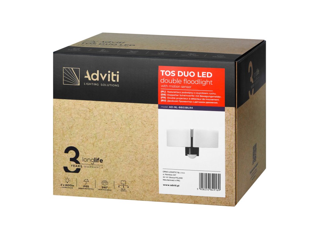 TOS DUO LED 2x20W dvojité zahradní reflektor se snímačem pohybu PIR, 2x1600lm, IP65, 4000K, PC, černý