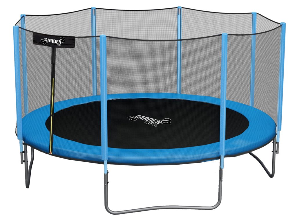 Trampolína je ideálním řešením pro zábavu pro děti, jakož i sportovní nářadí pro dospělé. Tkanina je napnutá pomocí 72 pružin, které byly vhodně kalené a pozinkované, zabezpečené golierem naplněným pěnou. Trampolína má 4 nohy, které zvyšují stabilitu (pozinkované, dvojité široké nohy v systému "U"). Součástí balení je i žebřík a ochranná síť odolná vůči povětrnostním podmínkám, deformacím a oděru (180 cm).