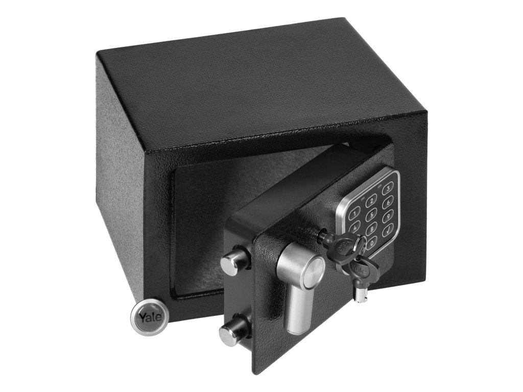 Po třech nesprávných pokusech o zadání kódu dojde k dočasnému zablokování trezoru. Trezor je také vybaven indikátorem nízké úrovně baterie a zahrnuje dva mechanické klíče pro nouzové otevření.