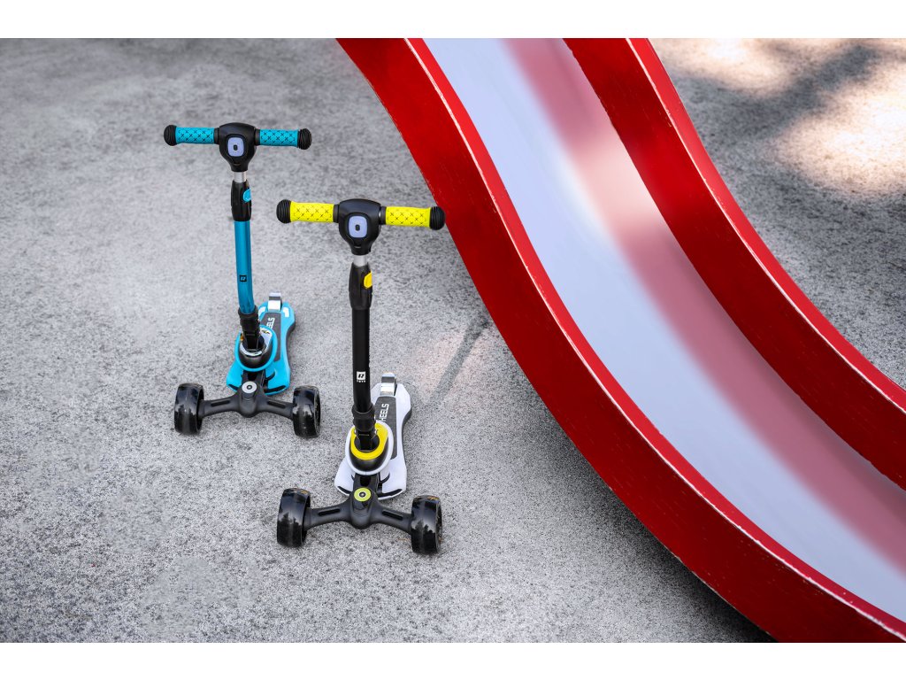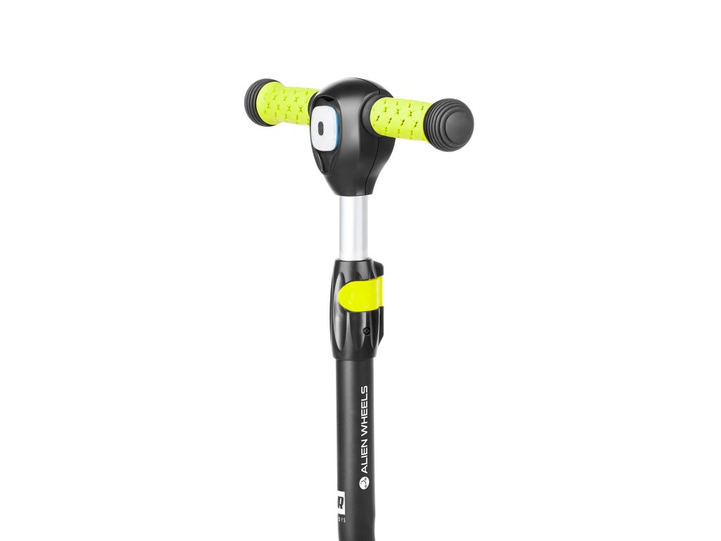 S péčí o komfort a bezpečnost během jízdy byla koloběžka Rebel Alien Wheels vybavena řídítky s 3-stupňovou nastavitelnou výškou, což umožňuje výběr nejvhodnějších nastavení podle výšky dítěte. To znamená, že obstojí skvěle i jako koloběžka pro nejmladší.