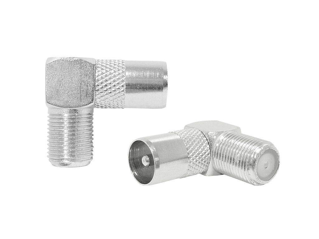 TV konektor zástrčka - zásuvka typu F, měděná úhlová Min. objednávka: 10 ks.TV konektor zástrčka - zásuvka typu F, měděná úhlová