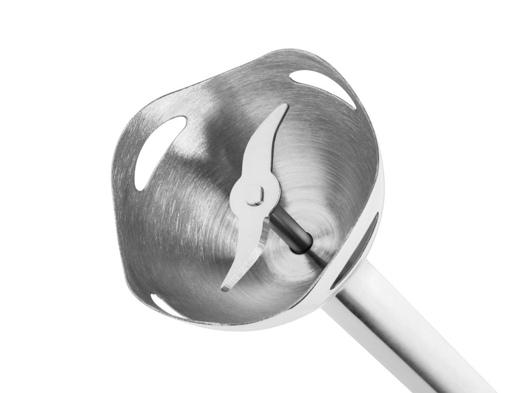 Jak mixovací konec s čepelemi, tak i šlehač byly vyrobeny z nerezové oceli. To umožňuje míchat a mixovat produkty o vysoké teplotě – až do 60 °C. Nerezová ocel je také zárukou, že přístroj vám poslouží opravdu dlouho.Plynulá regulace rychlosti otáček: 8 500 - 12 000 otáček/minutu