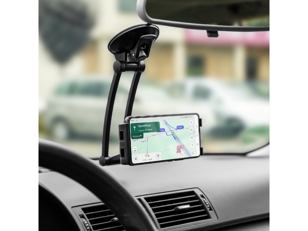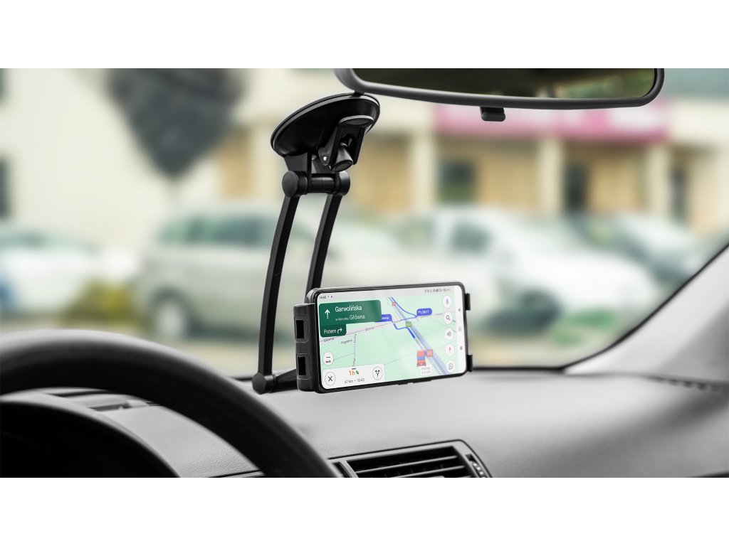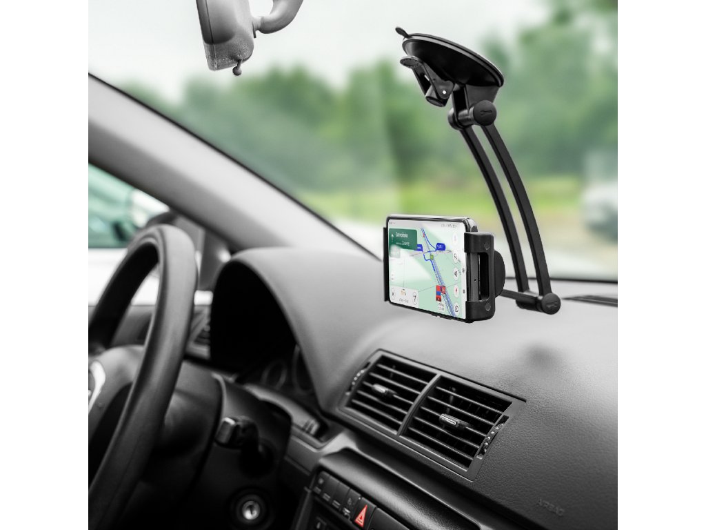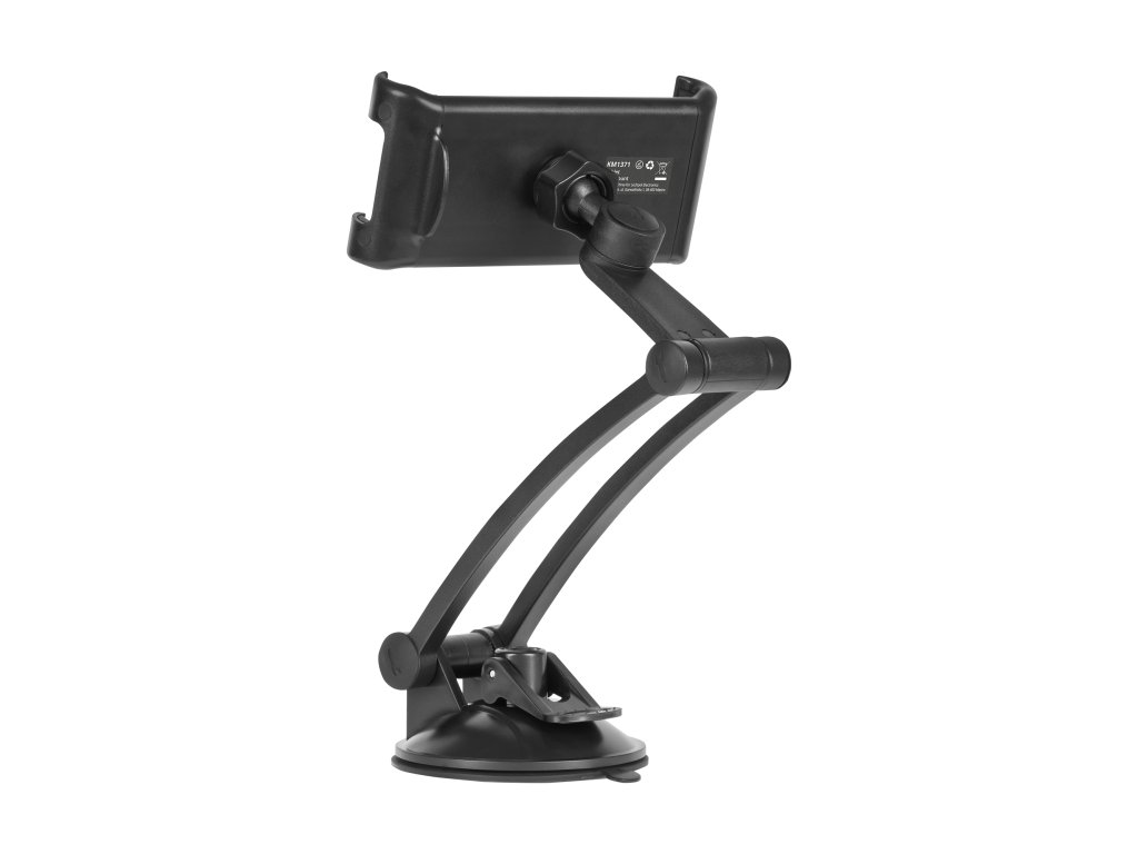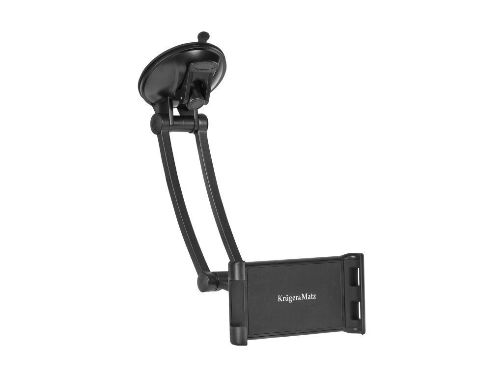 Držák Kruger&Matz je vybaven pevným uchycením na přísavku, což zajišťuje bezpečné připevnění na sklo nebo jiný hladký povrch. Díky tomu tablet zůstává stabilní i během jízdy po nerovných cestách.