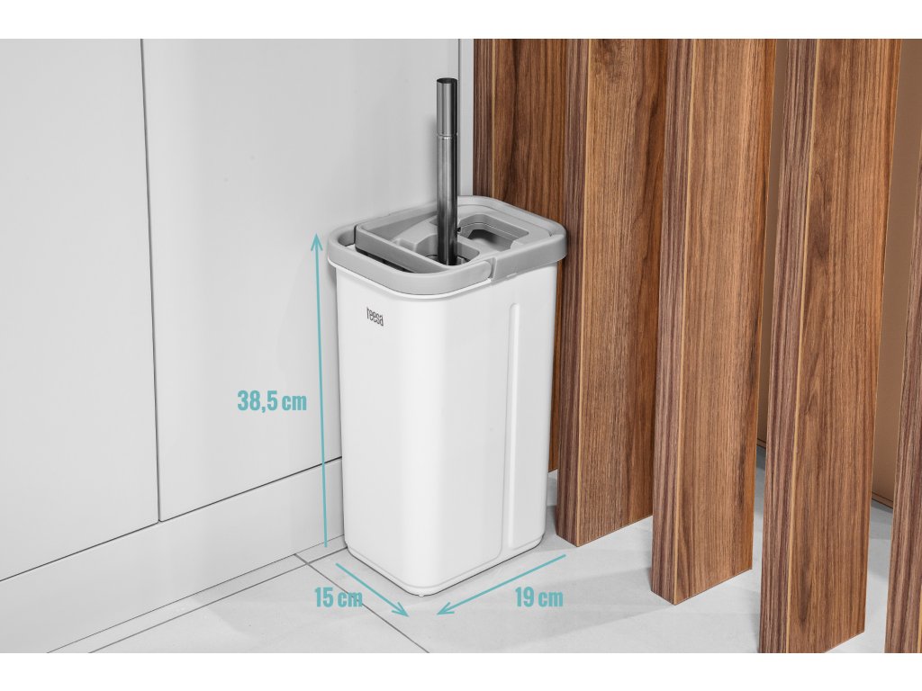 Spoločnosť Teesa si zakladá na praktických riešeniach, a preto bolo dvojkomorové vedro na mop New Clean R13 navrhnuté tak, aby napriek svojmu objemu 5,7 litra nezaberalo pri skladovaní veľa miesta. Rukoväť mopu je navyše sklopná, takže ju možno uložiť do vedra.