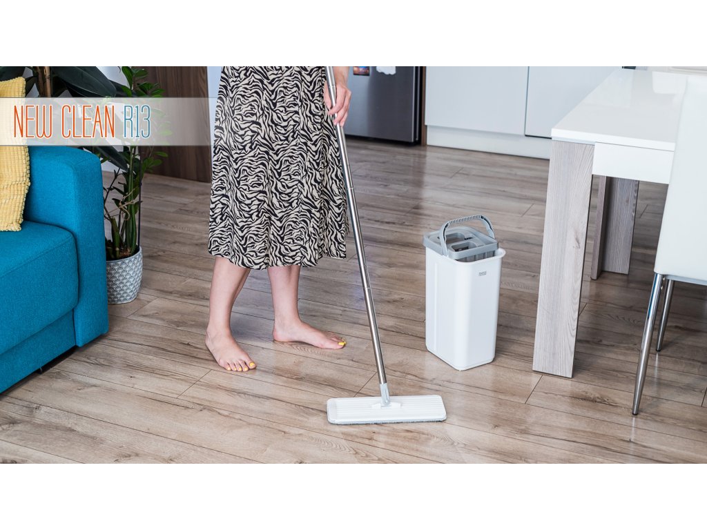 Pohodlné, praktické a mimoriadne účinné! Presne to dokáže dvojkomorový mop Teesa New Clean 13: vďaka plochej konštrukcii a otočnej hlavici umožňuje jednoduché upratovanie aj v ťažko prístupných miestach, napríklad pod pohovkou alebo posteľou. Navyše vďaka špeciálnej konštrukcii vedra mop nepotrebuje veľa vody, takže s mopom New Clean 13 určite ušetríte nielen čas, ale aj peniaze.
