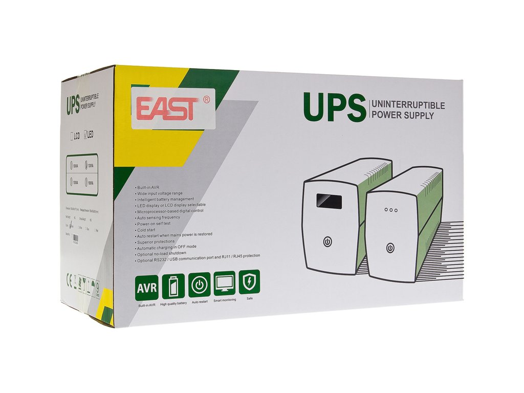 UPS1500-T-LI/LED je záložní zdroj UPS od společnosti EAST, který poskytuje komplexní ochranu a velkou rezervu výkonu v malé a ekonomické konstrukci. Záložní zdroj UPS chrání před výpadky napájení a rušením napětí. Kromě toho tento UPS poskytuje ochranu před přepětím RJ-45(in/out). Vybavený stabilizátorem napětí (AVR) zabezpečí jasné a stabilní napájení připojeného zařízení. Ideální pro každé použití v domácnosti nebo malých kancelářích. UPS1500-T-LI/LED má LED panel, který poskytuje základní informace o stavu zařízení a konektor USB , který umožňuje připojení k počítači. Je vybaven 2 bezúdržbovými akumulátory AGM s kapacitou 8Ah, které se nabíjejí v průběhu 6 - 8 hodin.
