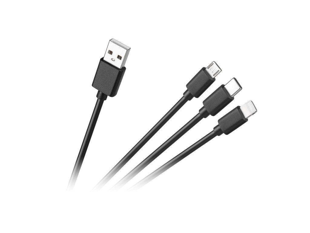 Propojovací kabel 3v1, USB A - micro/C/lightning