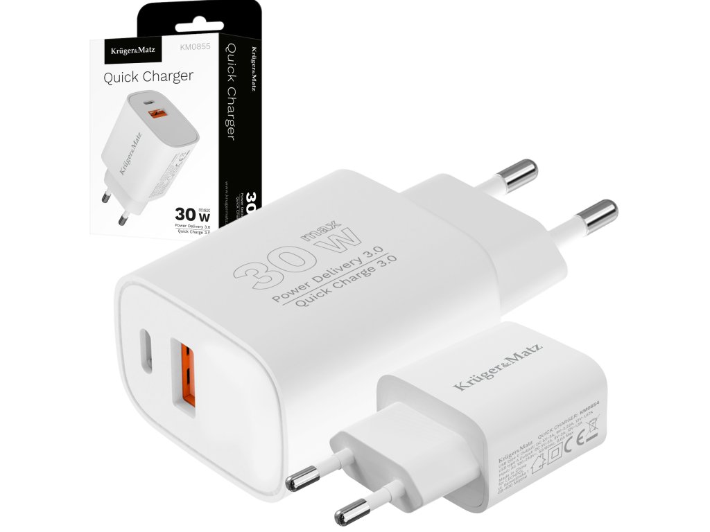 Pokud přemýšlíte, která USB síťová nabíječka dobije váš telefon, určitě to bude model KM0855. Zařízení pracuje s maximálním výkonem 30 W a je vybaveno funkcí rychlého nabíjení Power Delivery 3.0 a Quick Charge 3.0, které zlepšují efektivitu nabíjení.