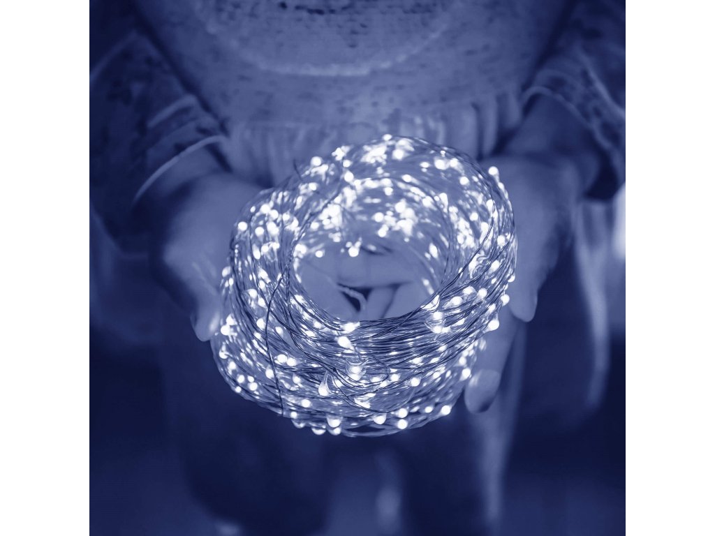 - Svítidla na odolných měděných drátech stříbrné barvy