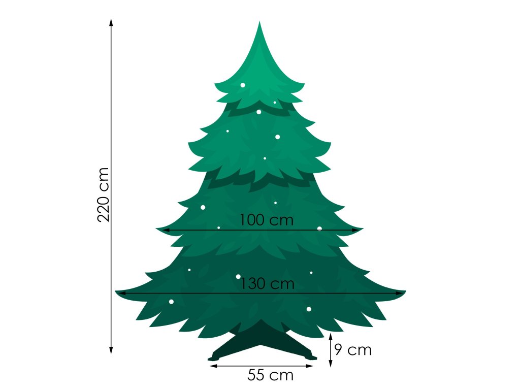 Rozpětí v závislosti na uspořádání větví vánočního stromku je 130 cm