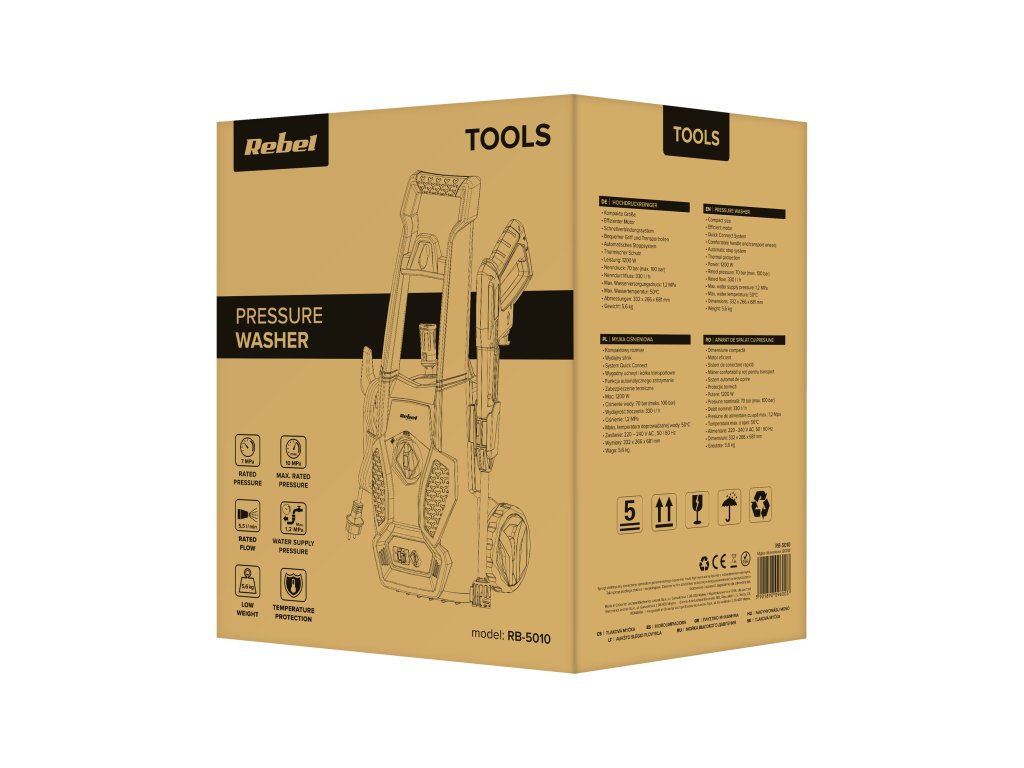 Přemýšlíte, která vysokotlaká myčka bude vyhovovat vašemu domovu? Rebel RB-5010 je pokročilé zařízení, které vám bez problémů pomůže udržet vaše okolí v čistotě.