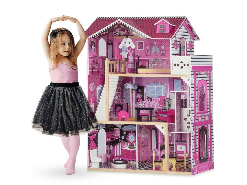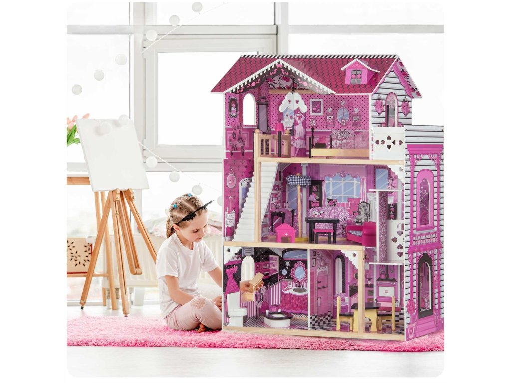 Velký dřevěný domeček pro panenky 3patrový s výtahem