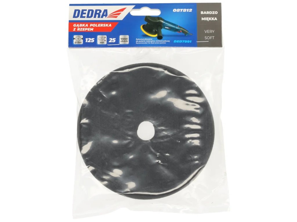 Leštící houba je kompatibilní s upevňovacím diskem 08T810. Doporučeno pro excentricko-otáčkovou leštičku DED7991.