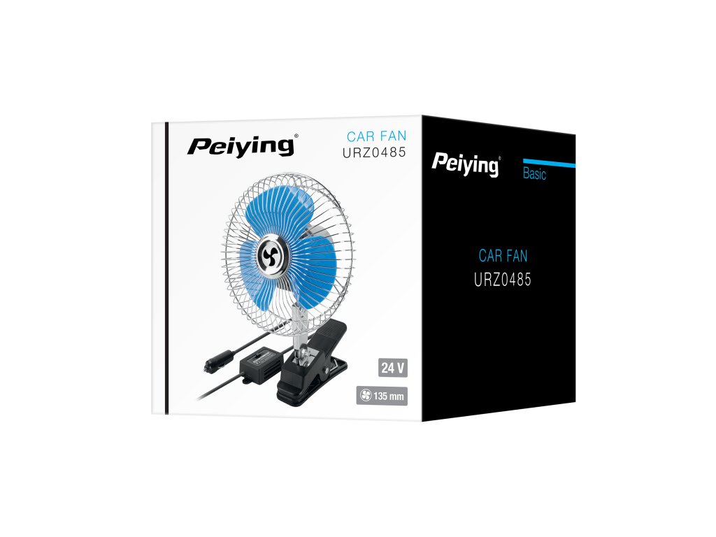 Napětí: 24 V Výkon: 15,6 W Zástrčka: zásuvka zapalovače Dva režimy rychlosti Držák s klipem Oscilace: 90° Průměr vrtule: 135 mm Průměr mřížky: 170 mm Délka kabelu: 120 cm Nastavení úhlu sklonu Hmotnost: 155 gNapětí: 24 V
