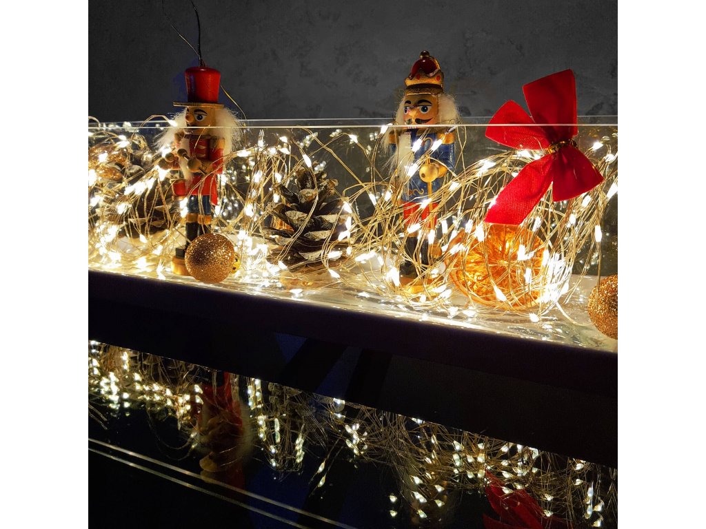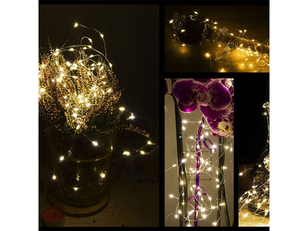 - Svietidlá na odolných medených drôtoch striebornej farby