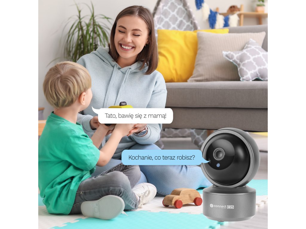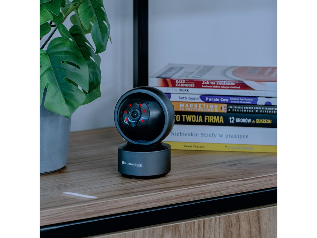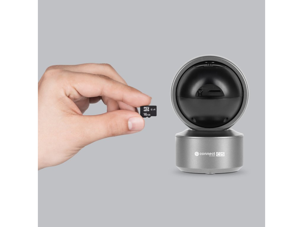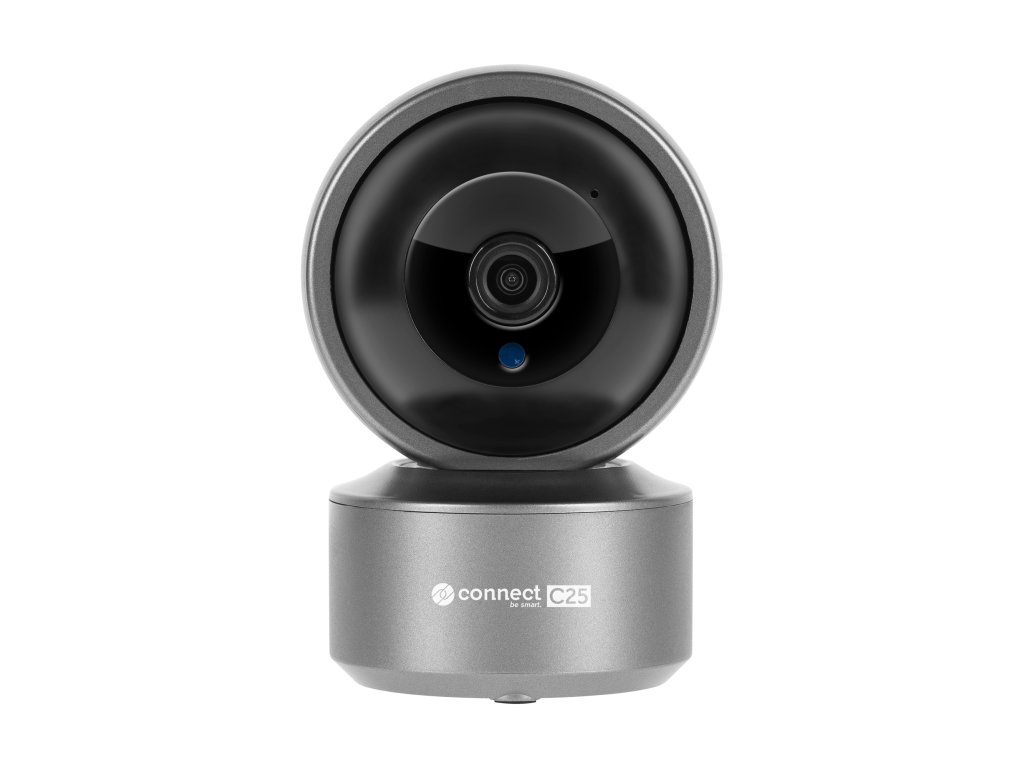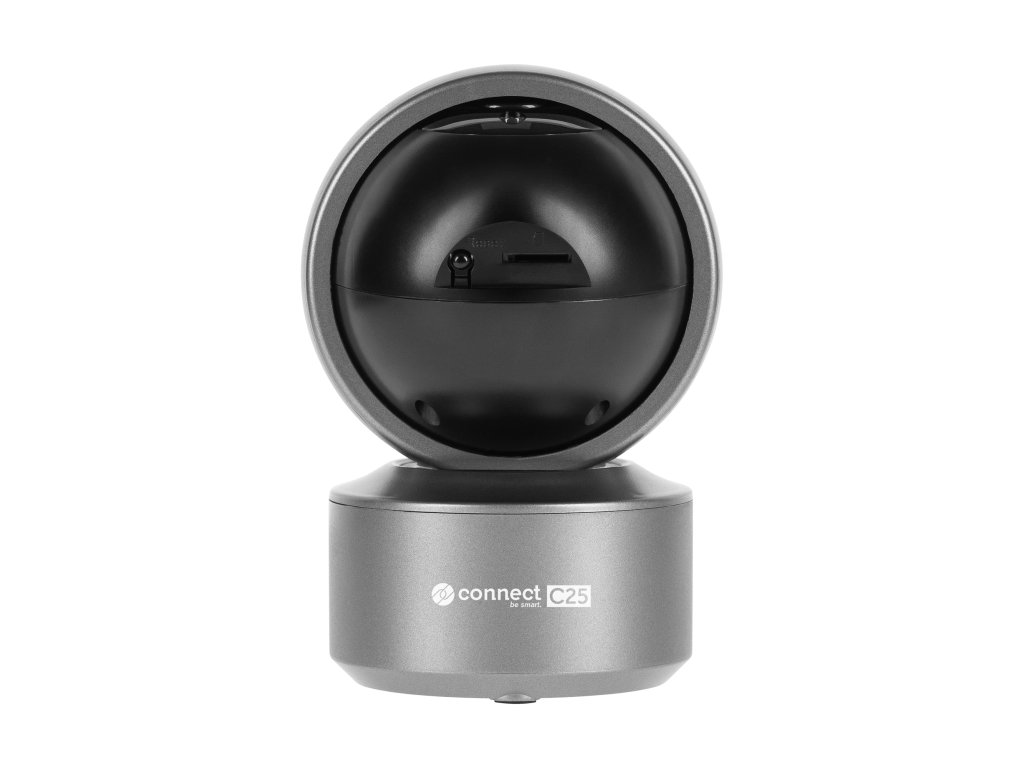 Otočná kamera WiFi Connect C25 má široké zorné pole. V dedikované aplikaci můžete ovládat zařízení horizontálně pod úhlem 355° a vertikálně pod úhlem 90°. Taková flexibilita umožňuje téměř úplné pokrytí monitorované oblasti, díky čemuž máte jistotu všestranné ochrany a dozorování.