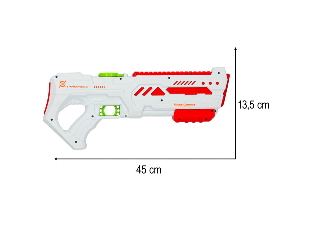 ? Kapacita nádržky na vodu: 200 ml ? Dosah střelby: Až 10 metrů ? Zvukové efekty: Ano, se zvukem imitujícím salvu výstřelů