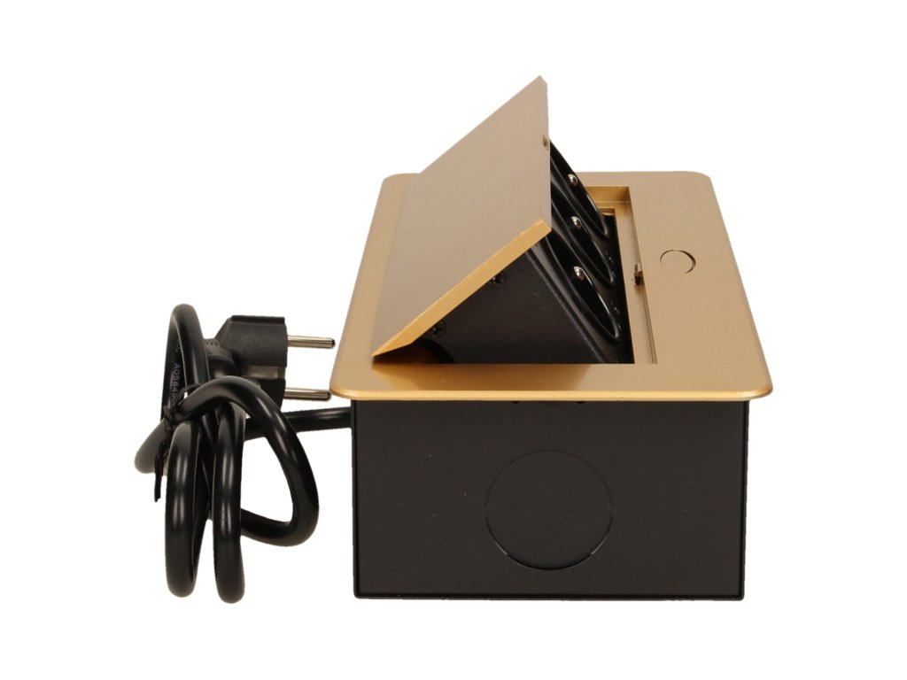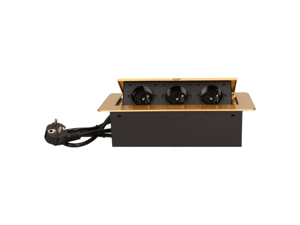 Sada tří elektrických zásuvek 2P+Z ve výsuvném horním krytu. Určené pro vnitřní instalaci do stolů, stolních desek a stolků ve vertikální i horizontální poloze, přičemž poskytují přístup k elektrickým zásuvkám.Všeobecné informace: