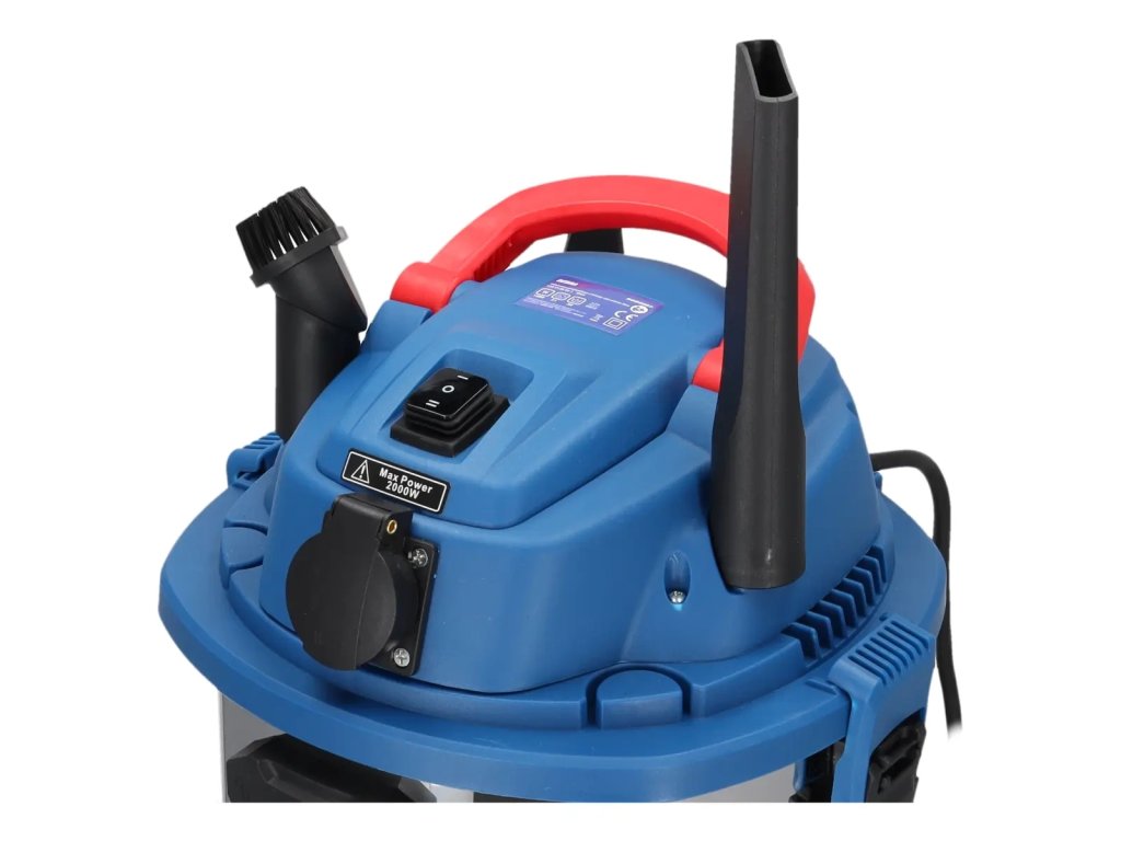 Kromě toho byl vysavač vybaven zásuvkou pro připojení elektrických nástrojů o maximálním výkonu 2000W, což umožňuje jeho současné použití s připojenými elektrickými nástroji.