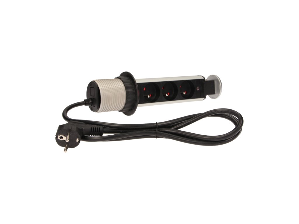 Sada tří elektrických zásuvek 2P+Z ve vysouvacím horním krytu poskytuje přístup k elektrickým zásuvkám. Má vysouvací panel se zásuvkami a přídavným zámkem. Určena pro vnitřní instalaci do stolů, stolových desek a kancelářského nábytku. Pro instalaci zařízení do stolové desky stačí jeden otvor o průměru 6 cm.Technická specifikace