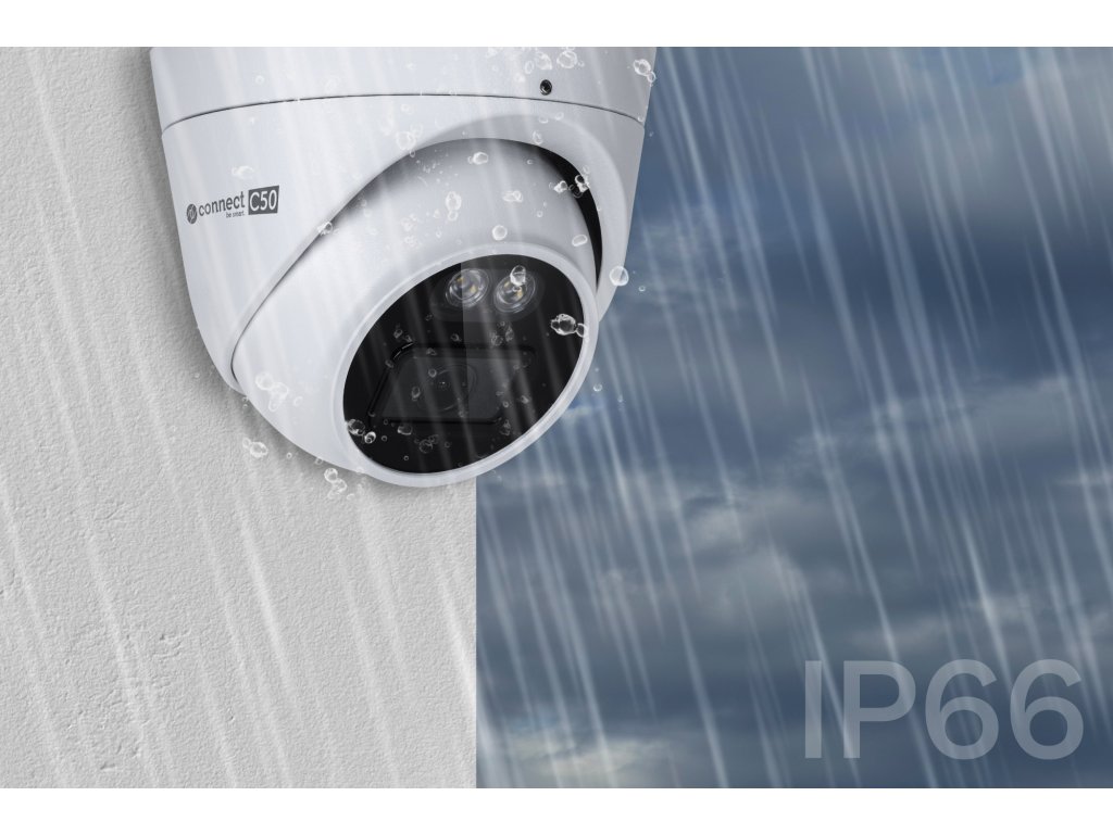 Venkovní bezdrátová kamera Wi-Fi Connect C50 je zařízení pro milovníky smart řešení. Zařízení může být ovládáno oblíbenou aplikací TuyaSmart, takže bez ohledu na to, kde jste, můžete kdykoliv zkontrolovat, co se děje na Vašem dvoře.