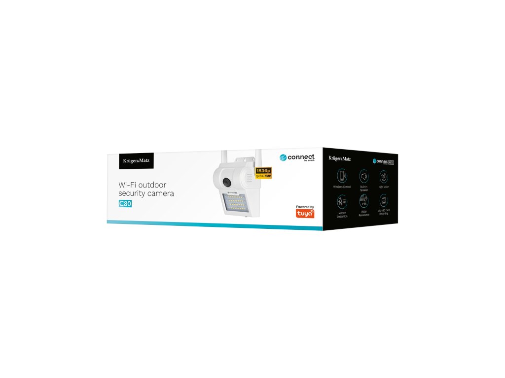 Bezdrôtová kamera Kruger&Matz Connect C80 je dokonalým doplnkom k vybaveniu vašej inteligentnej domácnosti. Vďaka Wi-Fi konektivite je možné zariadenie ovládať pomocou aplikácie TuyaSmart, takže bez ohľadu na to, kde sa nachádzate, môžete kedykoľvek skontrolovať, čo sa deje na vašom dvore.