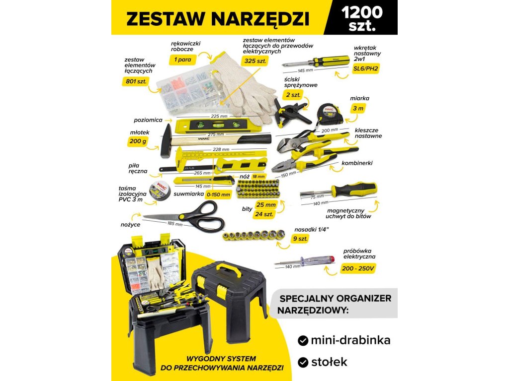 Wmc univerzální sada 1200ks 1/4'' 6-hranný +stolička